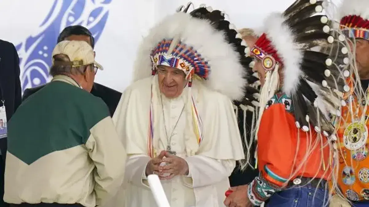 El pontífice viajó a Canadá tras la invitación de los pueblos originarios para que viniese a disculparse por los abusos perpetrados en los internados gestionados, muchos de ellos, por la Iglesia católica y donde cerca 150.000 niños fueron arrancados de sus familias, mientras que se ha estimado que más de 4.000 murieron por los maltratos y las enfermedades. La mayoría enterrados en fosas comunes sin ninguna identificación.