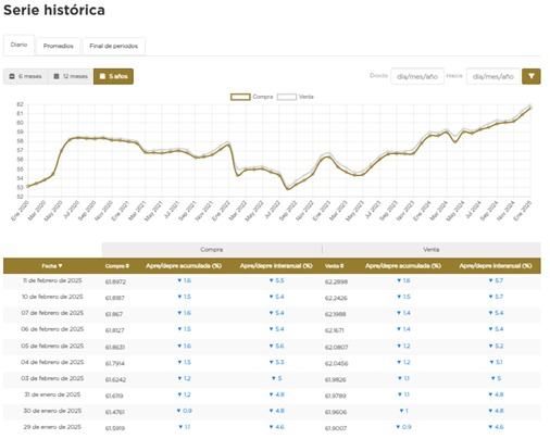Si bien la situación del peso en los últimos días ha sido fluctuante, la volatilidad reciente ha sido menor comparada con la del año pasado, lo que sugiere que, por ahora, el peso se mantiene más estable.