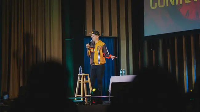 Durante el show producido por The Comedy Ring, el santiaguero combinó rutinas de stand-up con improvisaciones que retratan situaciones cotidianas, historias y las ocurrencias que han caracterizado la carrera del humorista.