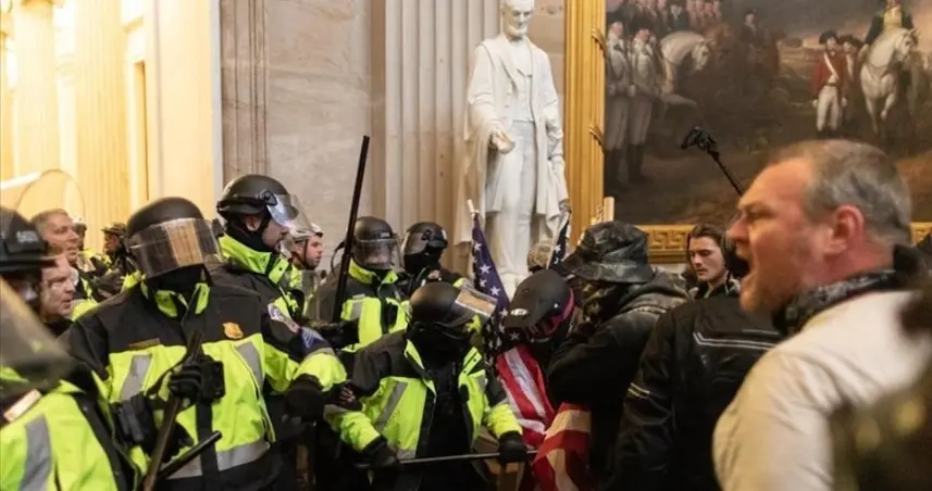 "En el Capitolio vivimos un combate medieval. Me golpearon con los palos de banderas estadounidenses, me rociaron con espráis químicos. Incluso nos atacaban con nuestro propio equipo de policía, como los escudos", recuerda.