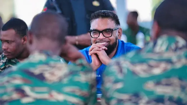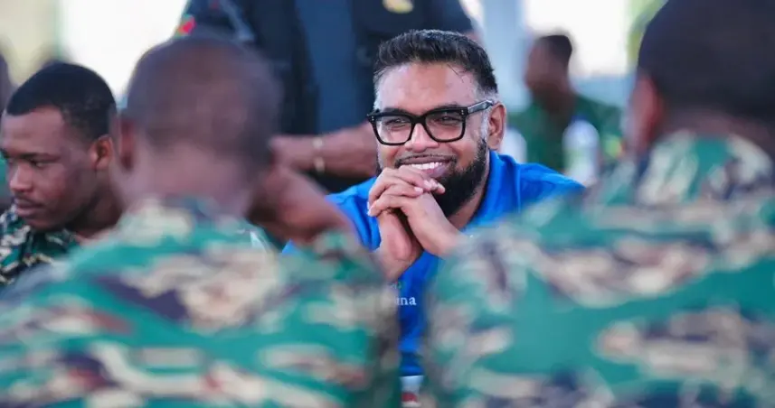 Ali visitó las tropas en Esequibo y destacó su confianza en ellas para proteger la soberanía del país. Subrayó el compromiso con la paz, pero reafirmó su disposición a defender el territorio.