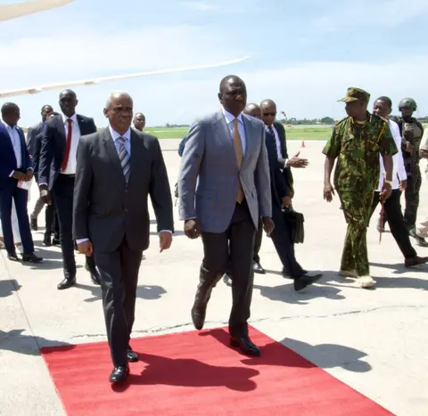 Aunque la llegada estaba prevista para las 10:30 hora local (14:30 GMT), el avión de Ruto aterrizó en el Aeropuerto Internacional de Puerto Príncipe alrededor de tres horas después.