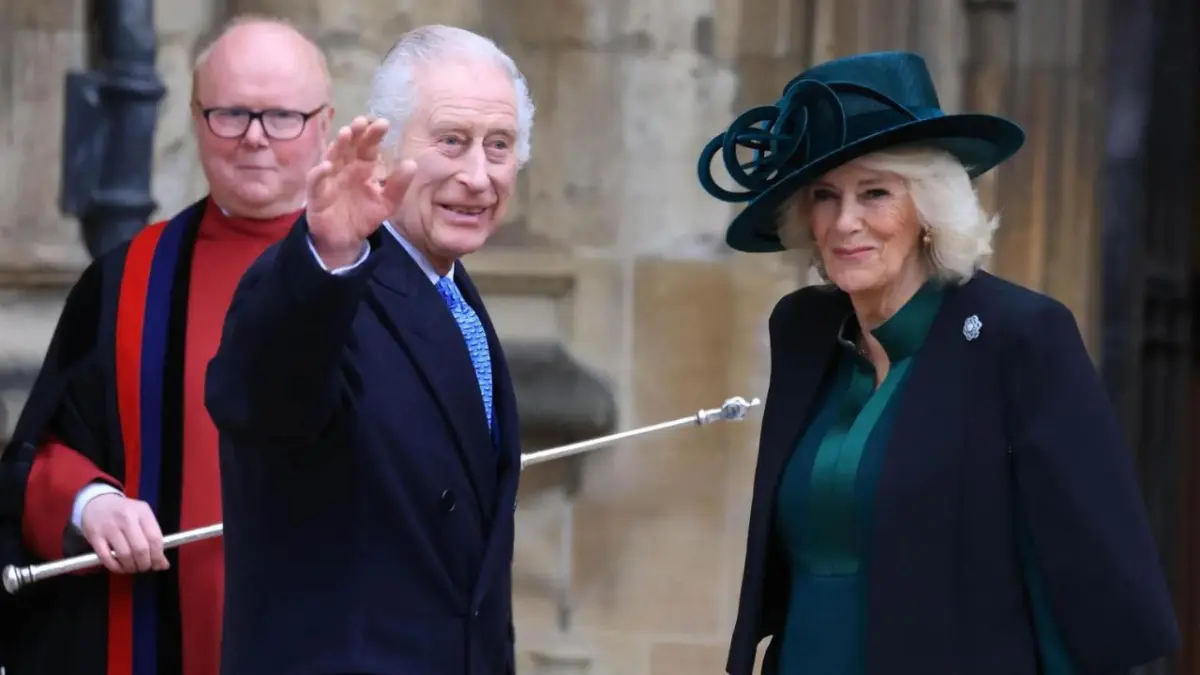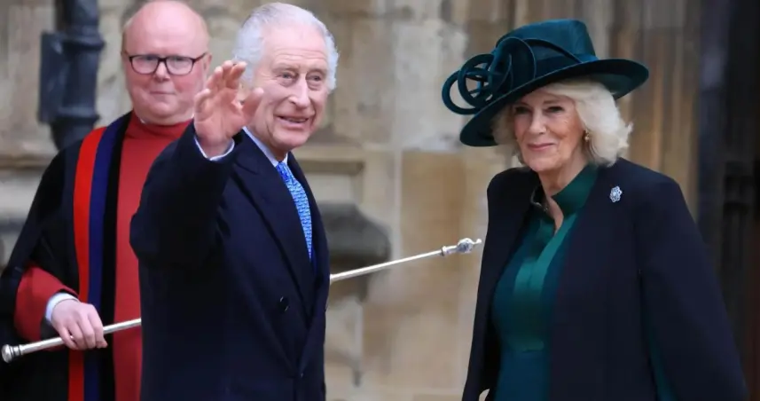 Carlos III y Camila llegaron en torno a las 9.45 GMT a la iglesia de San Jorge y al salir del coche saludaron desde lejos a la multitud. Al felicitarle a distancia la Pascua una ciudadana, él respondió: "Igualmente".
