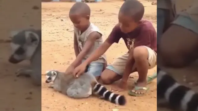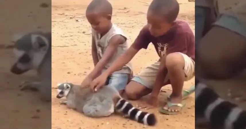 En el video se puede observar dos niños jugando con el animal. Ambos le rascan la espalda, pero el problema ocurre cuando dejan de hacerlo.
