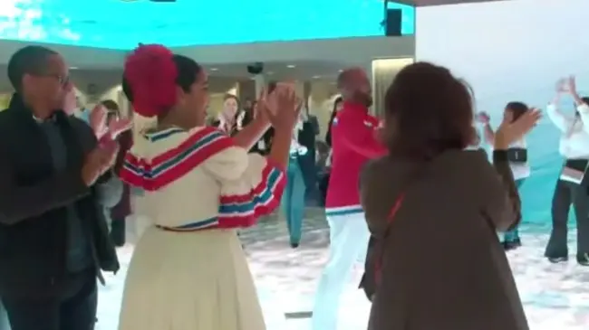 La presentación no solo destaca por su impacto visual, sino también por el componente emocional que despierta en los dominicanos, quienes se sienten transportados a su tierra natal a través de la música, las imágenes y los sonidos típicos del país. “Yo sentí que estaba allá, cuando llegué y vi esa playa, la Zona Colonial... Todo eso me impactó, fue como que me llegó al alma”, expresó con emoción una de los visitantes.