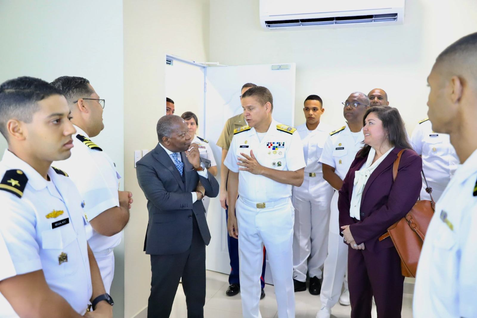 En su recorrido, Robinson tuvo la oportunidad de conocer el Centro de Operaciones Marítimas, un moderno espacio financiado por la agencia INL. Este centro es fundamental para fortalecer el liderazgo regional de la República Dominicana en la lucha contra el contrabando marítimo, evidenciando el compromiso de ambos países en la colaboración para enfrentar desafíos comunes.