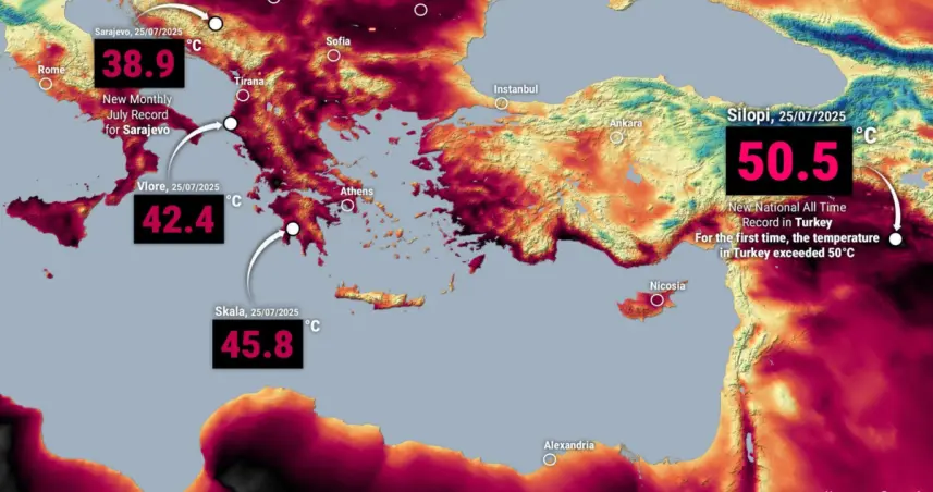 "Según los datos de nuestra Dirección General de Meteorología, se batió un récord de temperatura, con 50,5°C en Silopi (...) el 25 de julio", escribió en X el Ministerio de Medio Ambiente de Turquía.