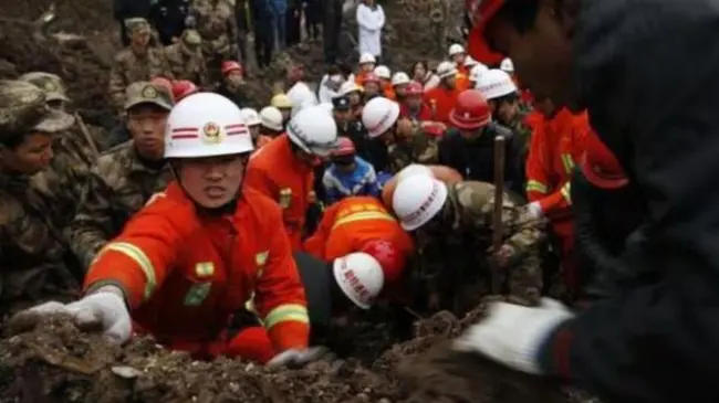 Equipos de búsqueda siguen trabajando para rescatar a los trabajadores que aún permanecen atrapados en el lugar, informó anoche la agencia oficial Xinhua.