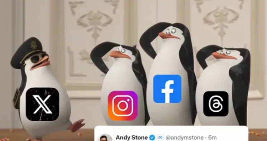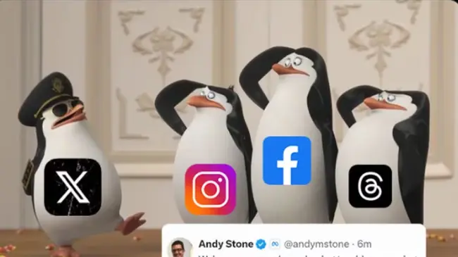 En la publicación, Musk usa un meme donde aparecen los pingüinos de Madagascar, una reconocida serie para niños de hace años, pero con la diferencia es que coloca el logo de X como el pingüino jefe y el resto de aplicaciones de Meta como Facebook, Instagram y Threads como sus “fieles seguidores”.