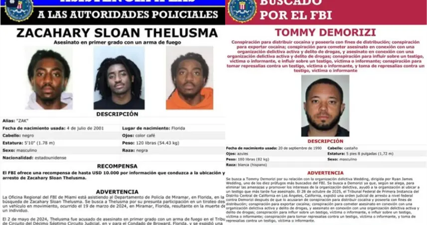 Los avisos corresponden a Tommy Demorizi y Zachary Sloan Thelusma, ambos requeridos por la justicia estadounidense por cargos graves.