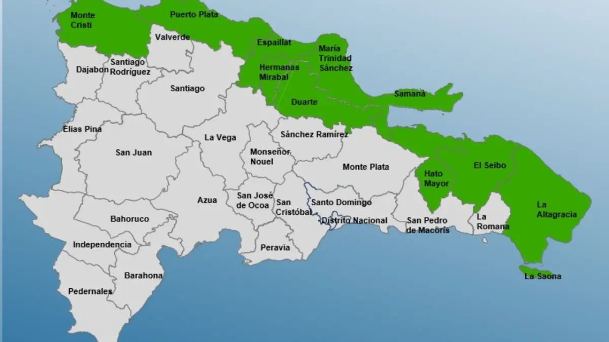 Las provincias que están el alerta verde son: Duarte, Puerto Plata, Hermanas Mirabal, Monte Cristi, Hato Mayor, María Trinidad Sánchez, Espaillat, El Seibo, Samaná y La Altagracia.