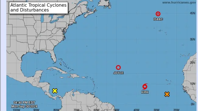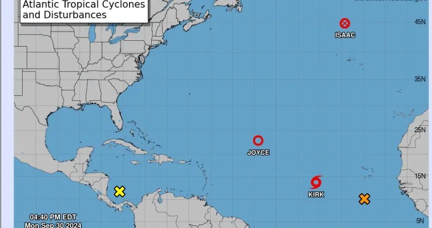 En la actualidad, el CNH vigila la depresión tropical Joyce, ubicada sobre el Océano Atlántico central; la tormenta tropical Kirk, ubicada al Este, y el último aviso sobre ciclón post-tropical Isaac.