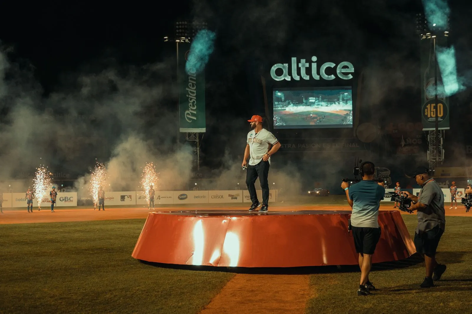 Escoltado por su excompañero Plácido Polanco, Pujols fue ovacionado por los miles de personas que abarrotaron el parque capitalino.