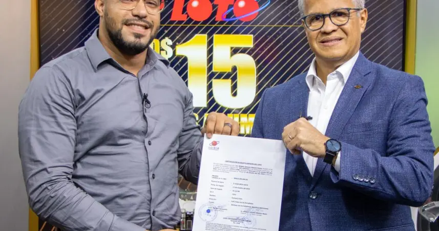 Santo Domingo.– SANTO DOMINGO.- Wilgber Ant. Vasquez Reyes, recibió el certificado que la acredita como ganador de los 15 millones de pesos con los cuales iniciaba el sorteo de “Tu única Loto” del pasado miércoles 11 de octubre del 2023.
