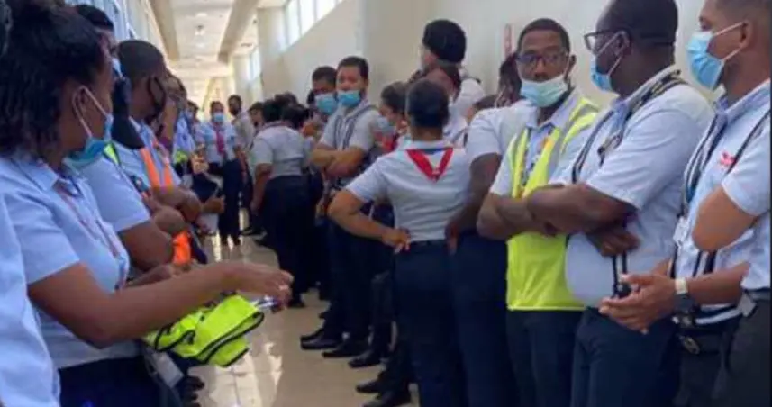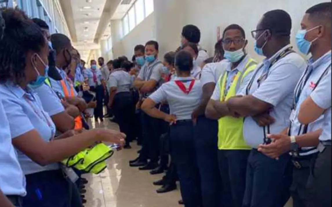 La Altagracia.- Los empleados del Aeropuerto Internacional de Punta Cana detuvieron sus labores y amenazaron con seguir el paro laboral en apoyo a su compañero de 23 años, quien fue detenido por supuesta vinculación a dos maletas con droga.