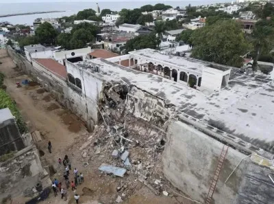 SANTO DOMINGO.- Miembros del Colegio Dominicano de Ingenieros Arquitectos y Agrimensores, se preparan para la recolección de los escombros, en tanto empleados piden reubicación de la sede.