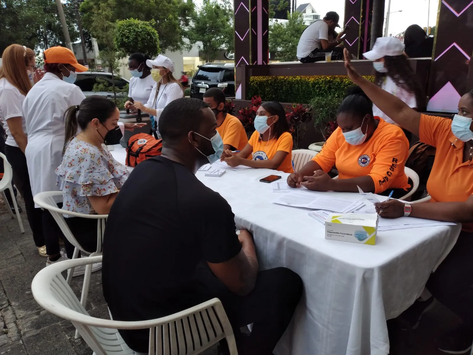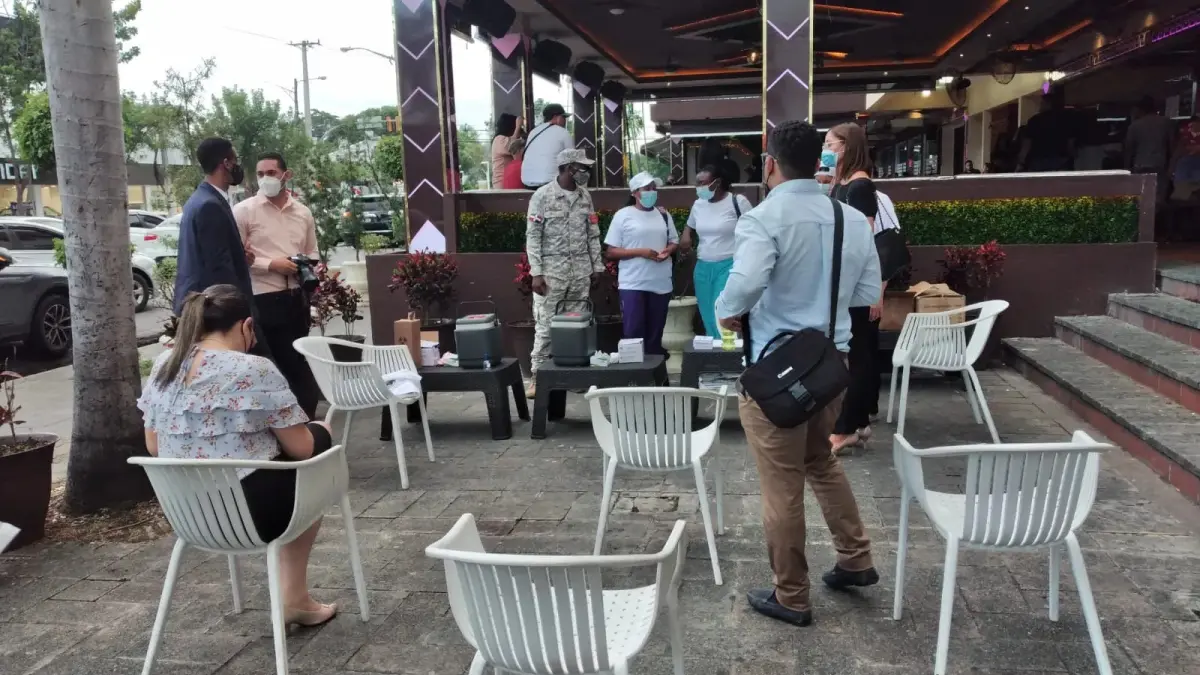 SANTO DOMINGO.- Decenas empleados y clientes de bares y restaurantes ubicados en la Plaza Universitaria de la avenida Sarasota decidieron vacunarse en los puestos de inoculación que habilitó el Ministerio de Salud Pública en los centros de diversión, iniciativa que procura lograr suministrar la tercera dosis al mayor número de personas que labora en horario nocturno, sobre todo aquellas que tienen el tiempo bastante limitado.