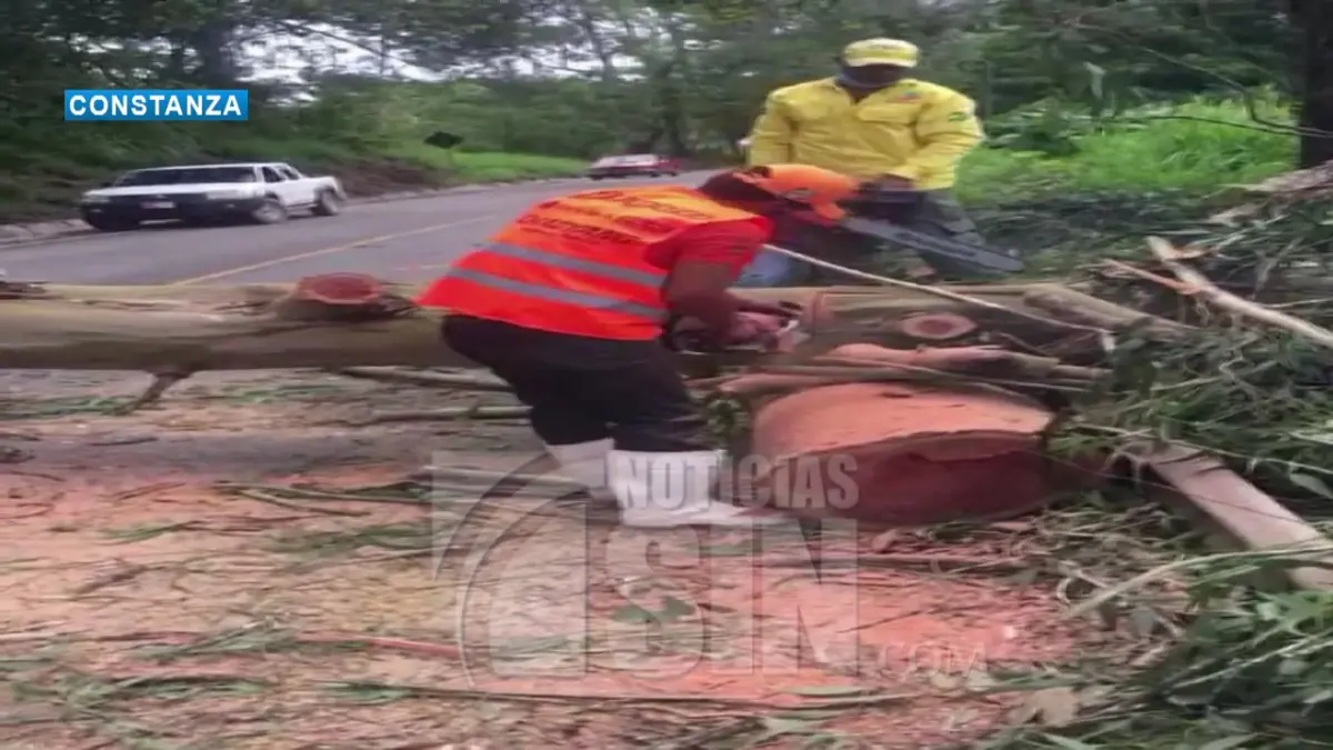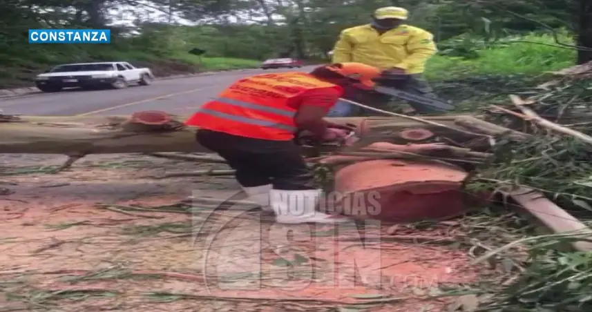 CONSTANZA.- La Defensa Civil podaron árboles caídos por los fuertes vientos de la tormenta tropical Isaías.
