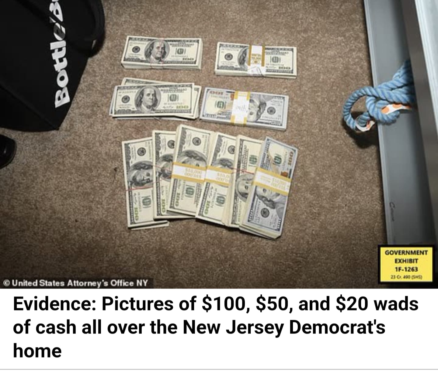 Según relata el Daily Mail, estas pruebas fueron presentadas en imágenes durante el juicio que mostraban billetes de diversas denominaciones, desde US$ 100 dólares hasta US$ 20, esparcidos por toda la casa desordenada del senador demócrata de Nueva Jersey. Estas fotografías fueron capturadas durante el registro realizado por el FBI en junio de 2022.