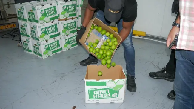 Al intervenir el contenedor, se incautaron 317 cajas (contaminadas) cargadas de limones, en cuyo interior se confiscaron camufladas, un total de 1,585 (1.5 toneladas), paquetes de una sustancia que se presume es cocaína, con un peso superior a los 1, 600 kilogramos.