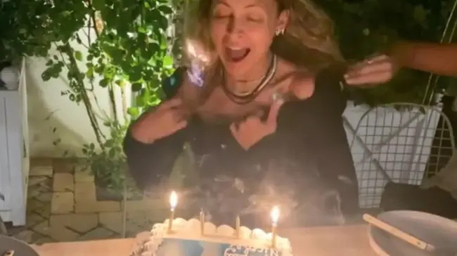 La fiesta al aire libre, con familiares y amigos cercanos, transcurrió de manera normal, entre alegría y felicidad, sin embargo, todo cambió cuando al reclinarse para soplar las velas, la socialité acercó demasiado su cabellera a las llamas.