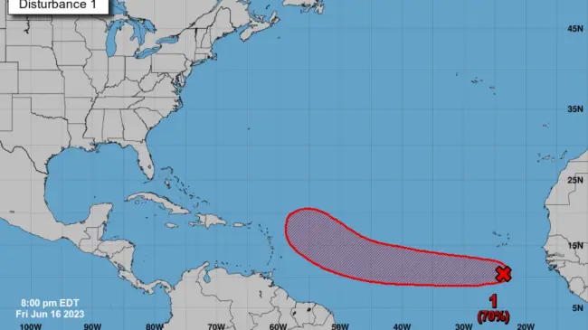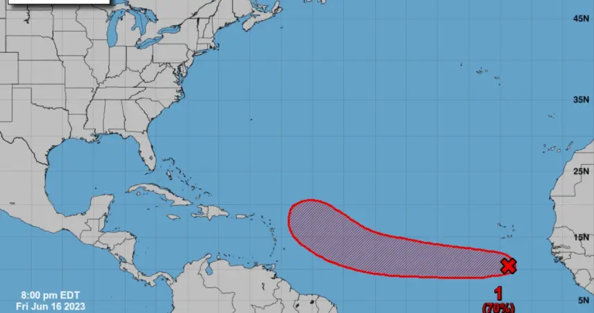 Asimismo, el centro meteorológico indicó que este fenómeno atmosférico, que se traslada a través del Atlántico tropical en dirección del oeste con una velocidad que oscila entre las 15 a 20 mph, está produciendo un área amplia de aguaceros y tormentas eléctricas desorganizadas.