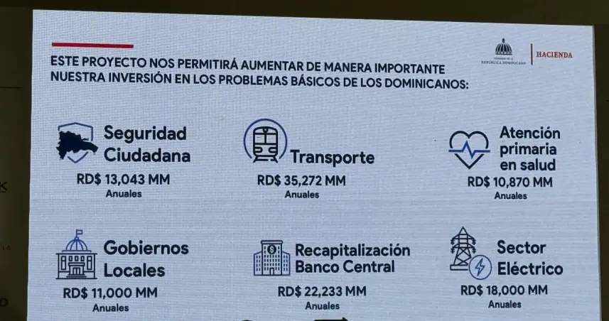 SANTO DOMINGO.– El ministro de Hacienda, Jochi Vicente, explicó en una reciente presentación ante la Cámara Americana de Comercio de la República Dominicana los principales destinos a los que se asignarán los recursos provenientes de la reforma fiscal.