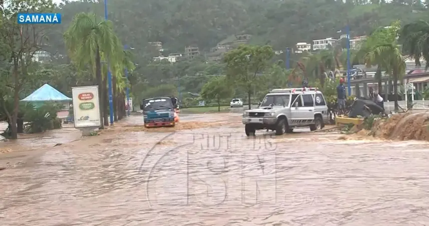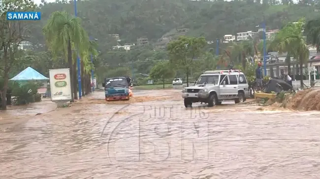 Ya para el medio día el desbordamiento de dos ríos habían inundado el Malecón de Samaná e incomunicado a la localidad El Valle.