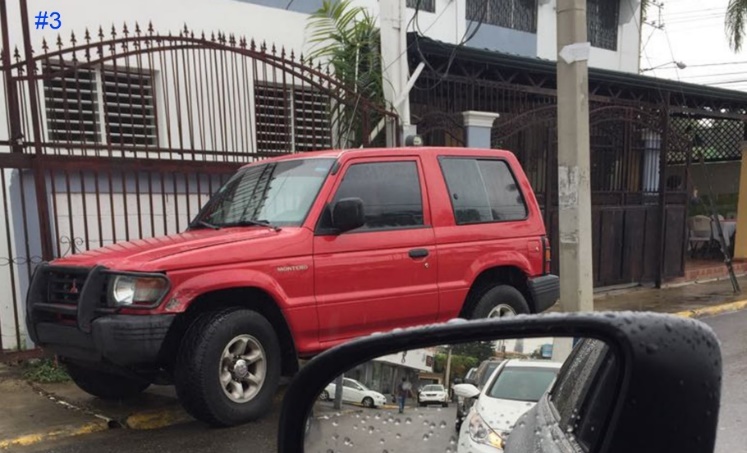 17.- Foto No. 3. El propietario de la yipeta de color rojo, para tomarse una cerveza en un restaurante, en Santiago, y estar cerca de su vehículo, procedió a colocarlo sobre la calzada.