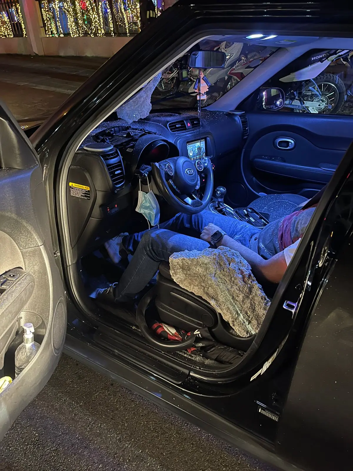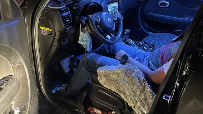 Dentro del vehículo, que tiene el parabrisas destruido, se encontró un pedazo de concreto, por lo que se supone que impactó al conductor mientras se desplazaba por el lugar.