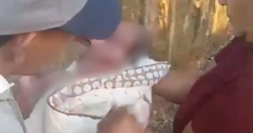 Al momento de ser hallado por residentes de la zona, el infante estaba envuelto en una manta de color crema y aparece en un video llorando desconsoladamente.