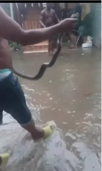 Santo Domingo.– SANTO DOMINGO.- En un video difundido a través de las redes sociales, se puede observar a un hombre sosteniendo una serpiente, en medio de las aguas acumuladas por los efectos de la tormenta tropical Franklin.