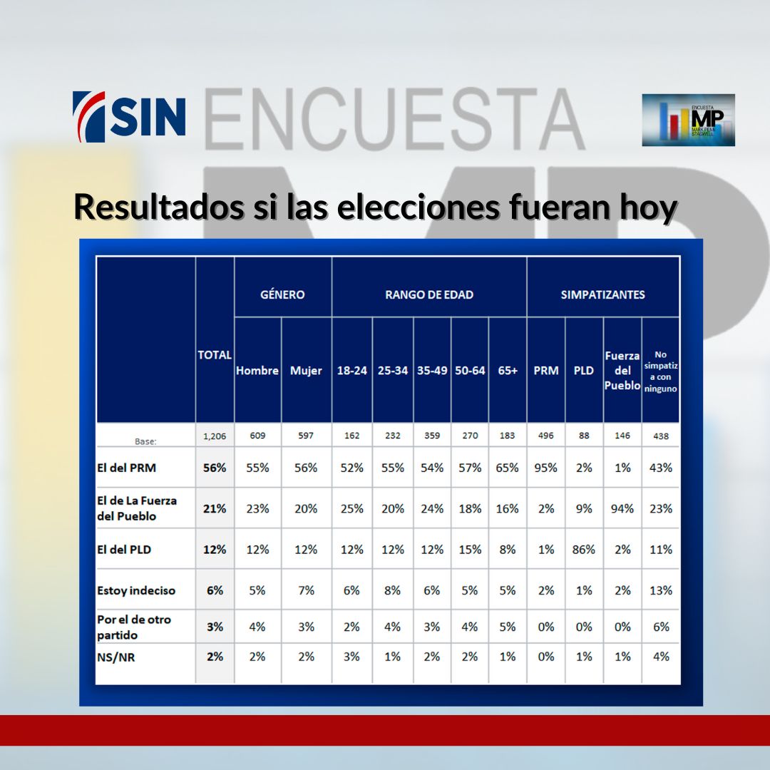 El PRM sacaría un 56% contra un 21% de Fuerza del Pueblo