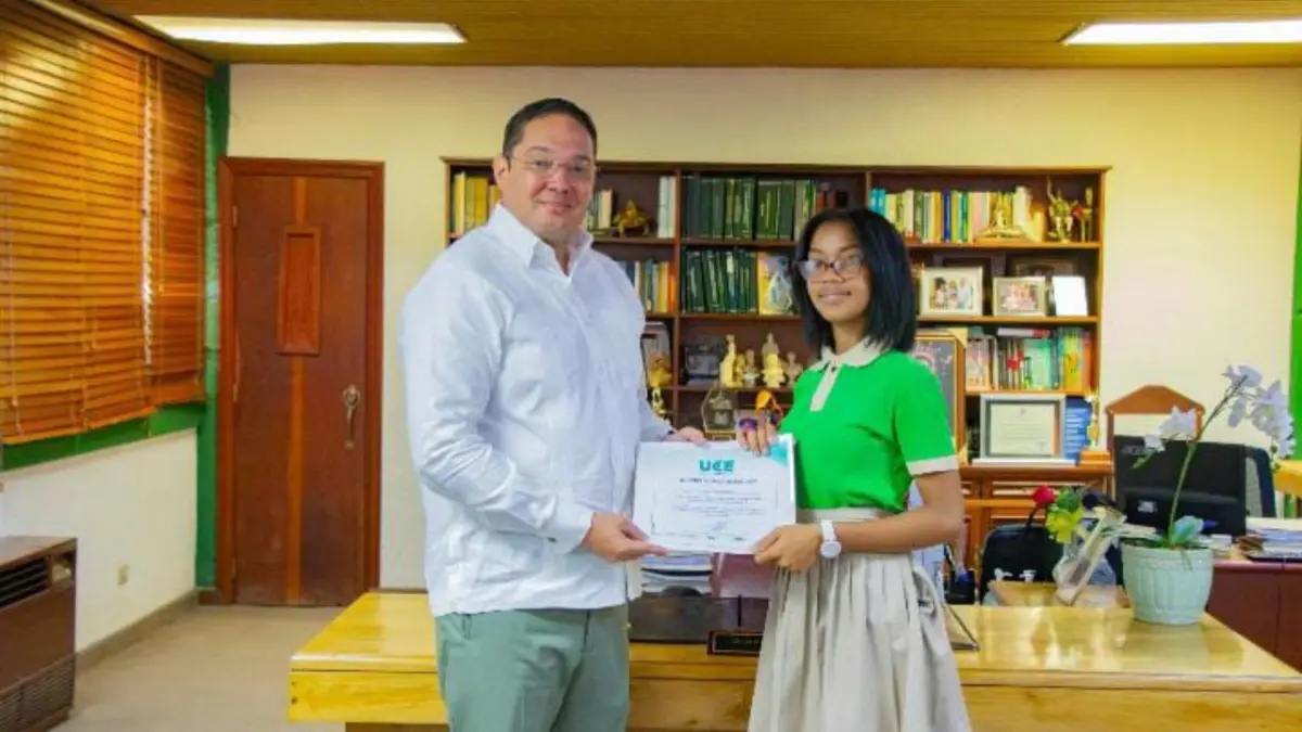 San Pedro de Macorís.– SAN PEDRO DE MACORÍS.- La Universidad Central del Este (UCE), otorgó este lunes una beca completa para cursar la carrera de medicina a la joven Ashly Esmeralda Feliciano, de 17 años, quien auxilió alumno que le cortaron la mano izquierda a la salida del liceo José Joaquín Pérez, ubicado en el sector Villa Velázquez, en San Pedro de Macorís.