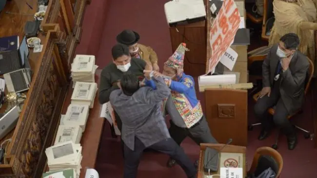 Entre insultos y golpes termina interpelación a un ministro en el Parlamento boliviano