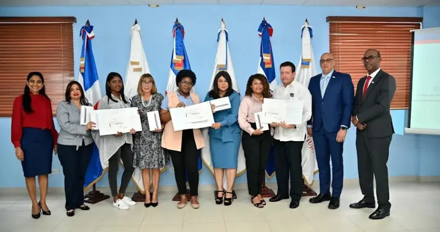 Kayra Quintero, Estrella Sánchez, Ana Castro y Selinex Tapia, del Instituto Tecnológico de las Américas; Alba Tejeda, de la Oficina Gubernamental de Tecnología de la Información y Comunicación; Jhoendy Soriano, de la Universidad del Caribe; Anyélica Reinoso, de la Universidad Tecnológica de Santiago; Génesis Espinal, de la Pontificia Universidad Católica Madre y Maestra; y Saira Hernández, de la Universidad Iberoamericana, fueron las estudiantes premiadas.