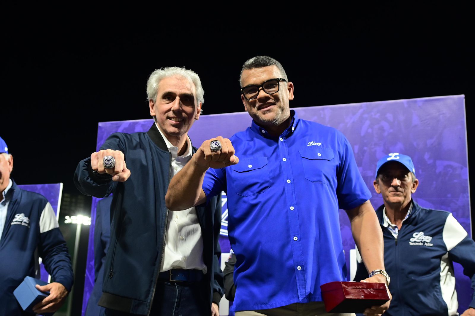 El presidente del Club Atlético Licey, Ricardo Ravelo Jana, hizo la entrega de su anillo a la directiva azul y procedió a entregar al gerente campeón a la directiva azul, Audo Vicente, quien llamó al Departamento de Operaciones de Béisbol, al timonel azul, José Offerman, operaciones de béisbol y jugadores.