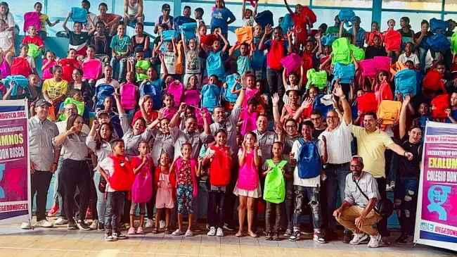 La Vega.– La Vega.- Decenas de niños fueron beneficiados por la Fundación Encuentro de Generaciones de Exalumnos Don Bosco (EGEDONBOSCO), donde entregaron kits de útiles escolares a infantes de escasos recursos.