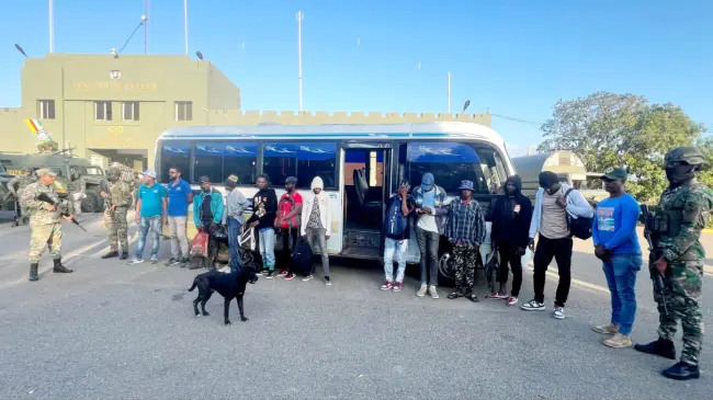 Según un comunicado de prensa, en el puesto de chequeo Santiago de La Cruz en Dajabón, miembros del ERD, detuvieron a Juan Javier Apolinar y a Dionicio Antonio Guzmán, quienes a bordo de un minibús blanco, marca Hyundai, trasladaban a 10 ciudadanos haitianos sin la debida documentación para permanecer en el país.
