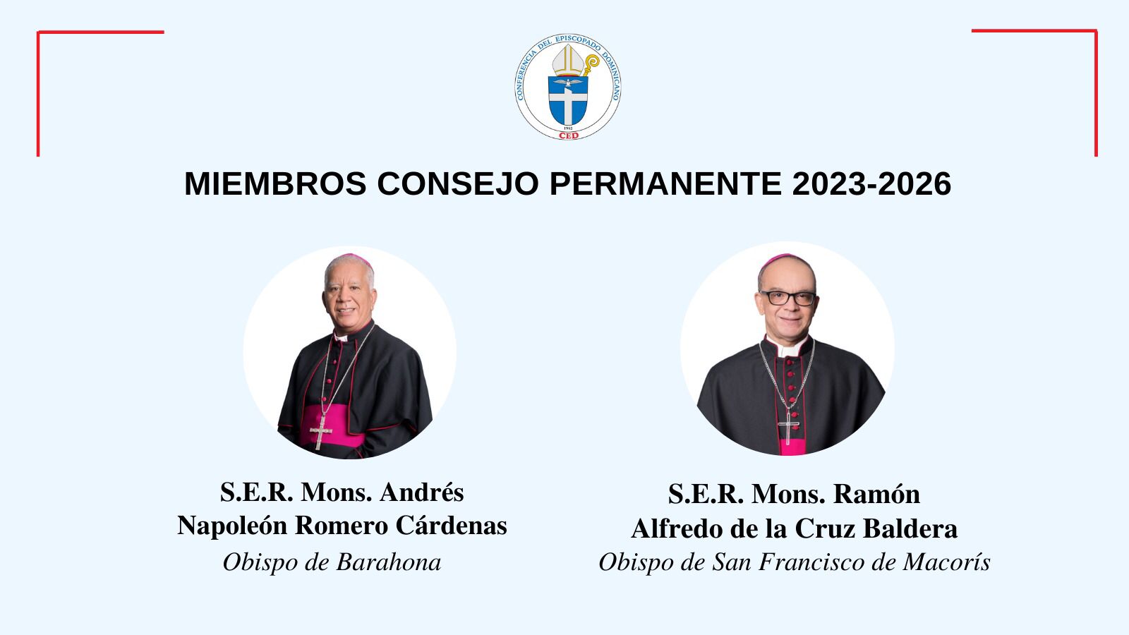 Dentro de la estructura de la CED se encuentra el Consejo Permanente, integrado por el presidente, vicepresidente, secretario general y un obispo representante de cada provincia eclesiástica, que, en esta ocasión, correspondió a Mons. Andrés Napoleón Romero Cárdenas, obispo de Barahona, y Mons. Ramón Alfredo de la Cruz Baldera, obispo de San Francisco de Macorís.