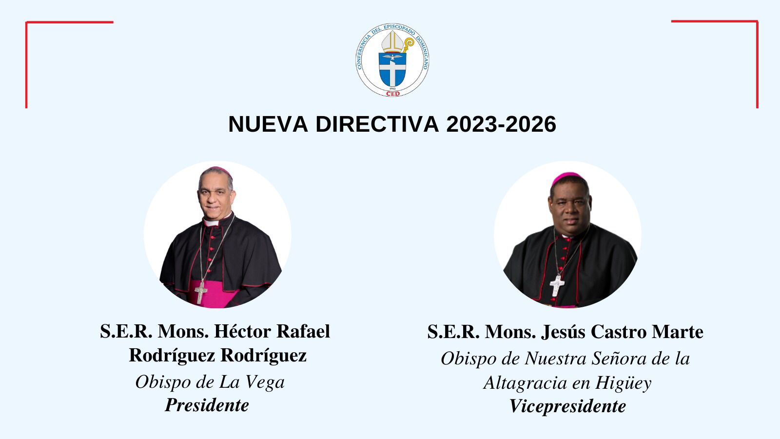 Como presidente fue elegido Monseñor Héctor Rafael Rodríguez Rodríguez, obispo de La Vega, quien anteriormente desempeñaba la responsabilidad de vicepresidente; en tanto, Mons. Jesús Castro Marte, obispo de Nuestra Señora de la Altagracia en Higüey, fue elegido como vicepresidente.