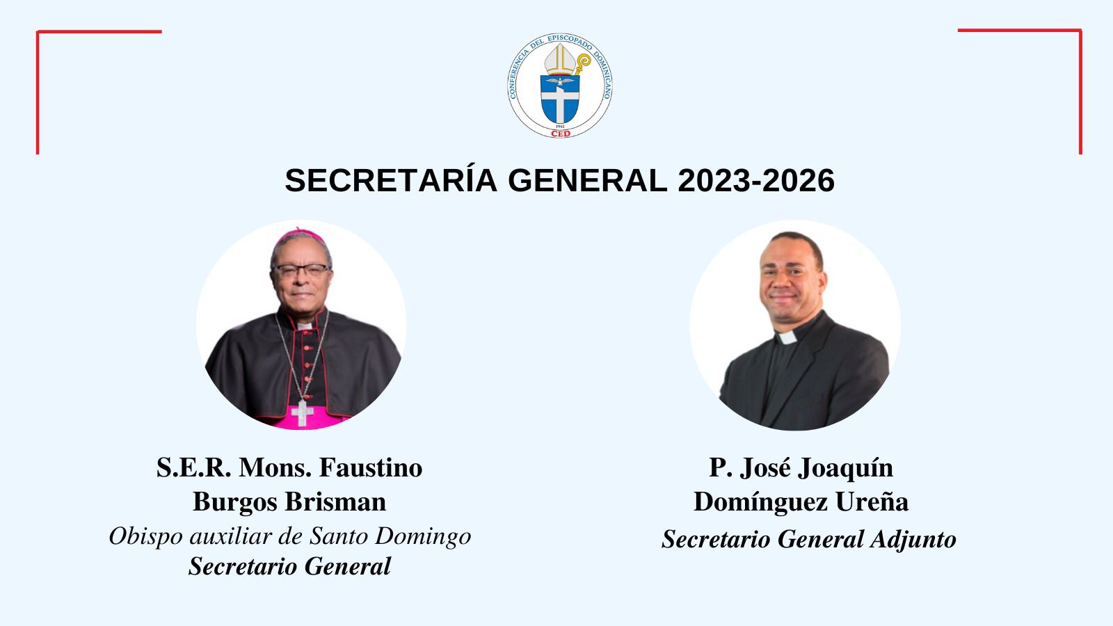 De su lado, Monseñor Faustino Burgos Brisman, obispo auxiliar de Santo Domingo, fue reelecto como secretario general, y el padre José Joaquín Domínguez Ureña, también reelecto como secretario general adjunto de la institución.