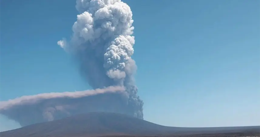 Las autoridades locales compartieron fotografías y videos de la columna gris surgiendo con fuerza desde el cráter y extendiéndose sobre la región.