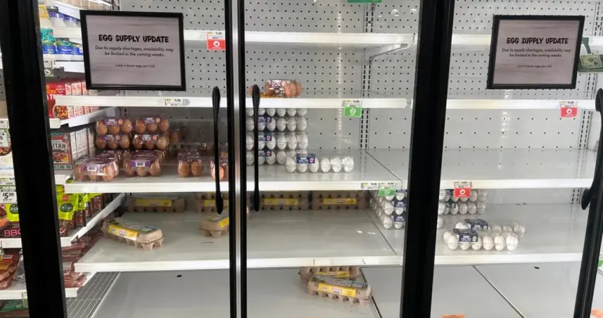 La escasez de huevos y el aumento de los precios en Estados Unidos se deben a un brote de gripe aviar, no a los aranceles o las políticas de inmigración de Trump, lo que desmiente las afirmaciones de las redes sociales.