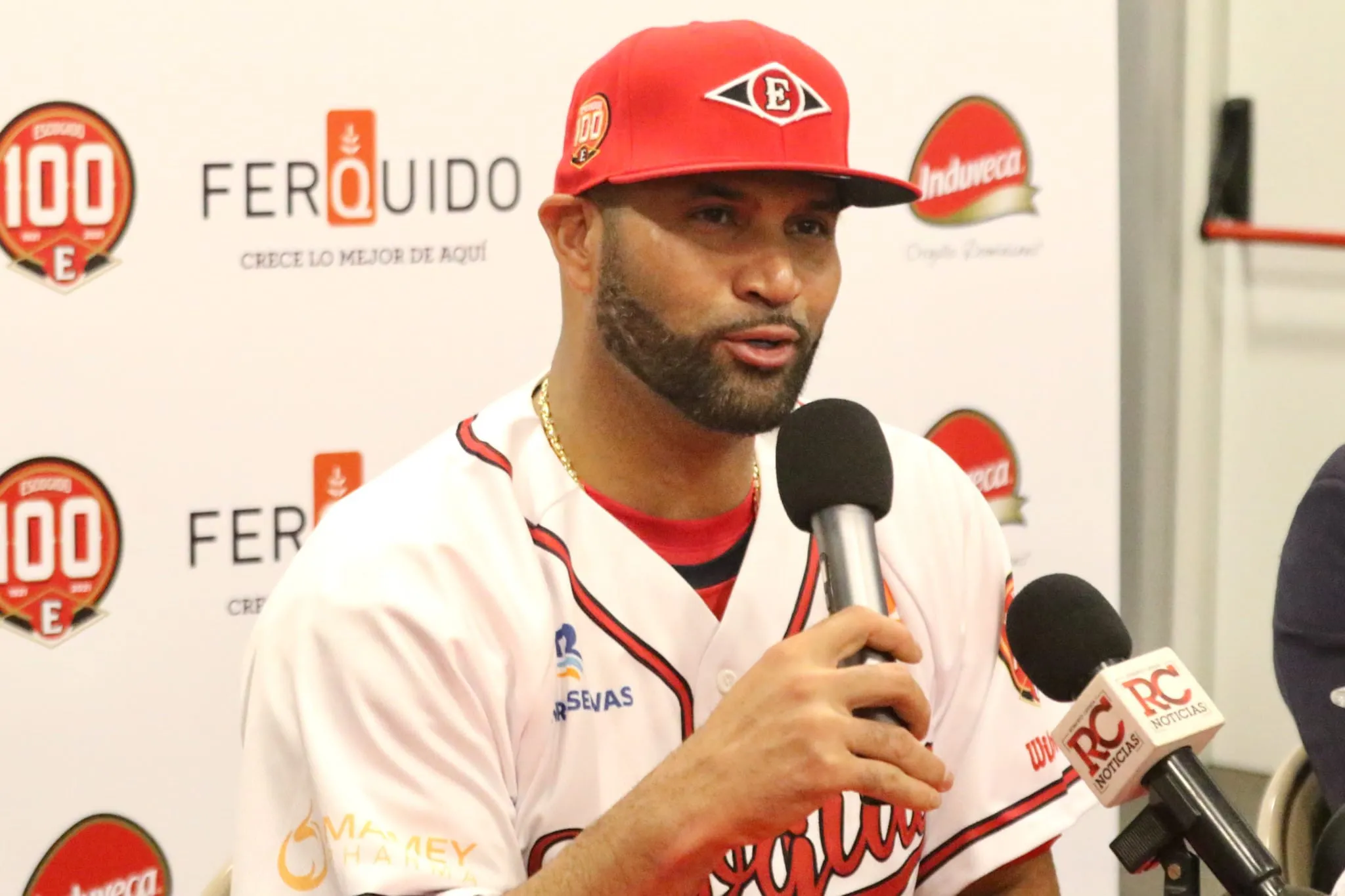 Santo Domingo.- Albert Pujols regresó a República Dominicana este lunes para enfundarse de nuevo la casaca de los Leones del Escogido en el campeonato de béisbol invernal dominicano, y podría jugar este martes en el partido contra el campeón de liga, las Águilas Cibaeñas, en la ciudad de Santiago.