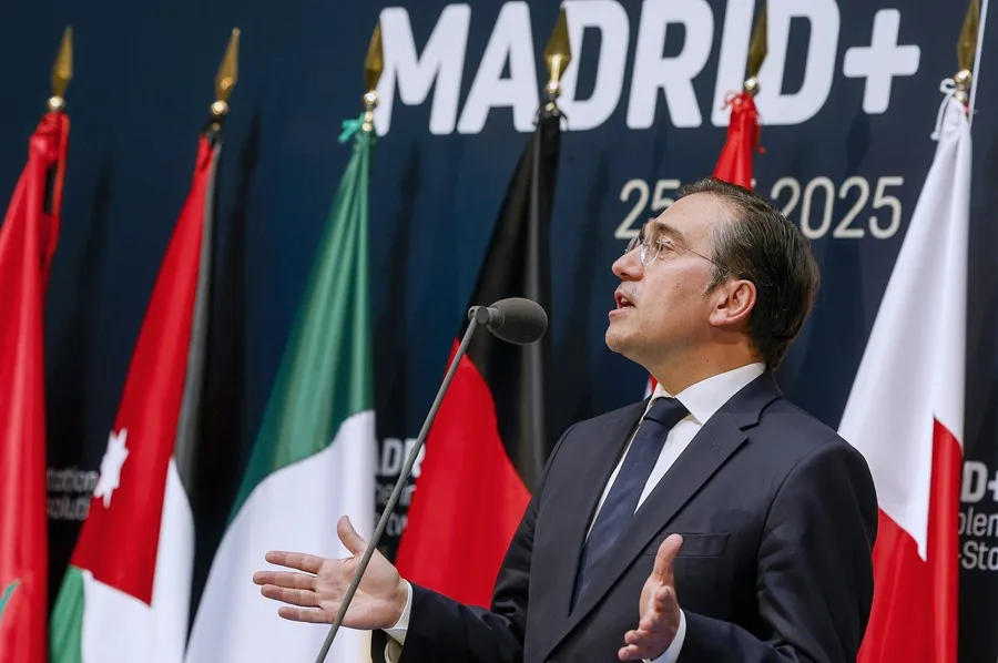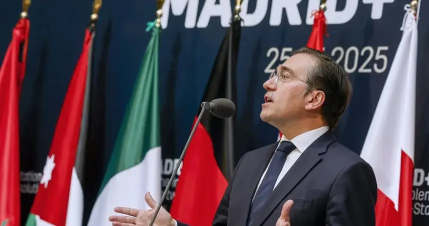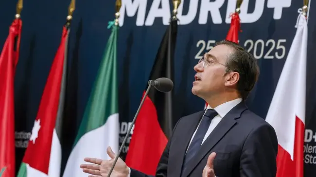 Albares planteó esta propuesta en el inicio de la cumbre del Grupo de Madrid, que reúne en la capital de España a representantes de 20 países europeos y árabes que promueven la solución de dos Estados como vía para superar este conflicto en Oriente Medio.