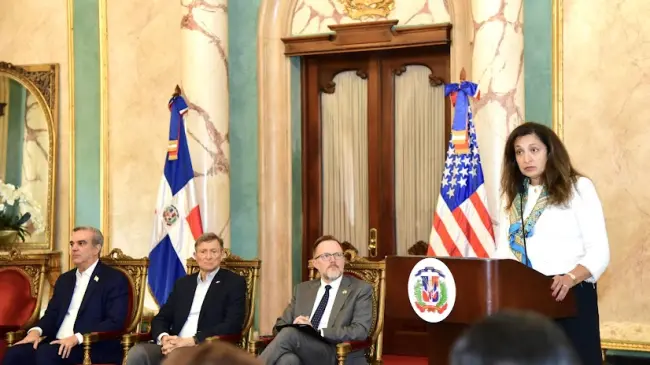 "Es por eso que me complace anunciar que la República Dominicana ha sido identificada como un "país brillante" y ha sido seleccionada para recibir apoyo adicional a través de la Asociación para el Desarrollo Democrático, un nuevo programa de USAID bajo la Iniciativa Presidencial para la Renovación Democrática - para demostrar que la democracia da resultados. Este programa proveerá fondos adicionales para ayudar a la República Dominicana a iniciar reformas y abordar desafíos clave de desarrollo en una variedad de sectores, identificados en asociación con los Estados Unidos", dijo Zeya en su discurso