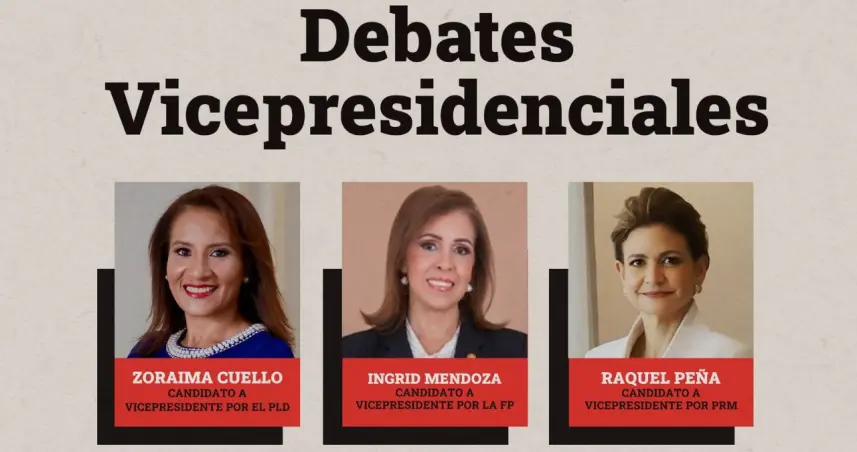La actual vicemandataria Raquel Peña por el Partido Revolucionario Moderno (PRM), Zoraima Cuello del Partido de la Liberación Dominicana (PLD) e Ingrid Mendoza de la Fuerza del Pueblo presentarán sus propuestas y soluciones a los problemas de interés nacional hoy a las 8 de la noche.