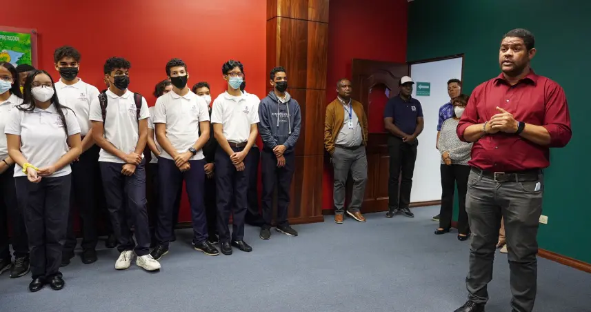 Santo Domingo.- El Instituto Nacional de Recursos Hidráulicos (INDRHI) impartió un recorrido por la Sala del Agua a estudiantes del Colegio APEC Fernando Arturo de Meriño (CAFAM), como aporte a la enseñanza sobre la importancia de los recursos hídricos con la finalidad de concientizar sobre el buen manejo del agua.