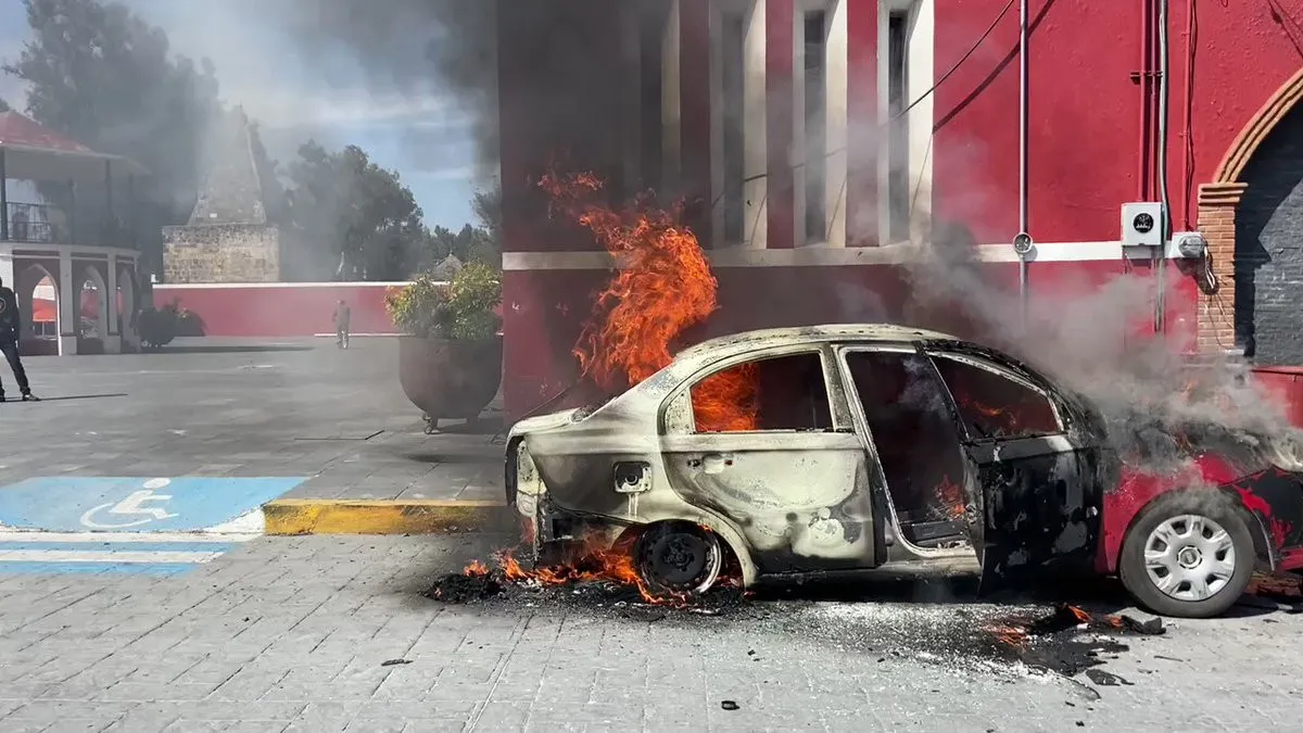 MÉXICO.-Estudiantes de escuelas rurales de maestros protestaron este jueves e incendiaron al menos un vehículo en el estado mexicano de Michoacán (oeste), para exigir contratos en el sistema educativo público estatal.